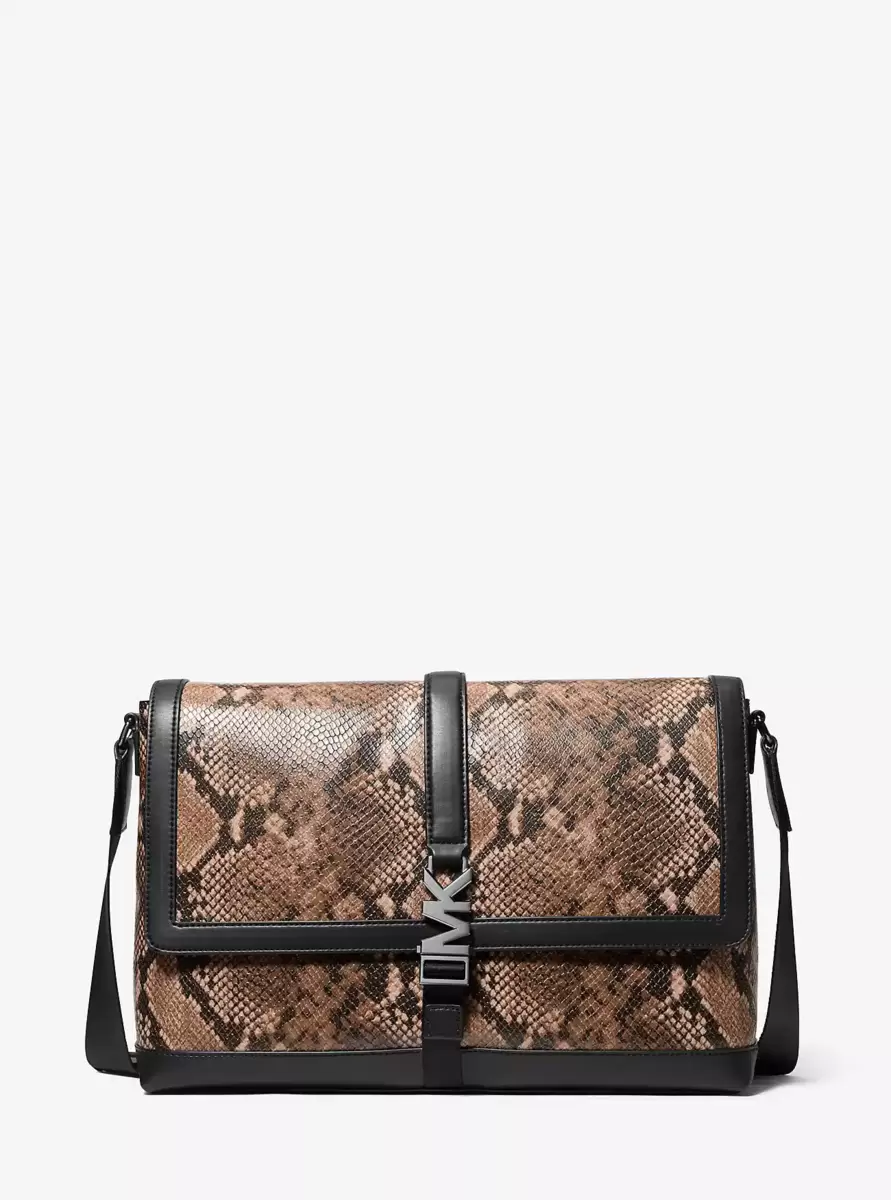 Średniej wielkości torba kurierska Cyrus z wytłoczonym wzorem węża