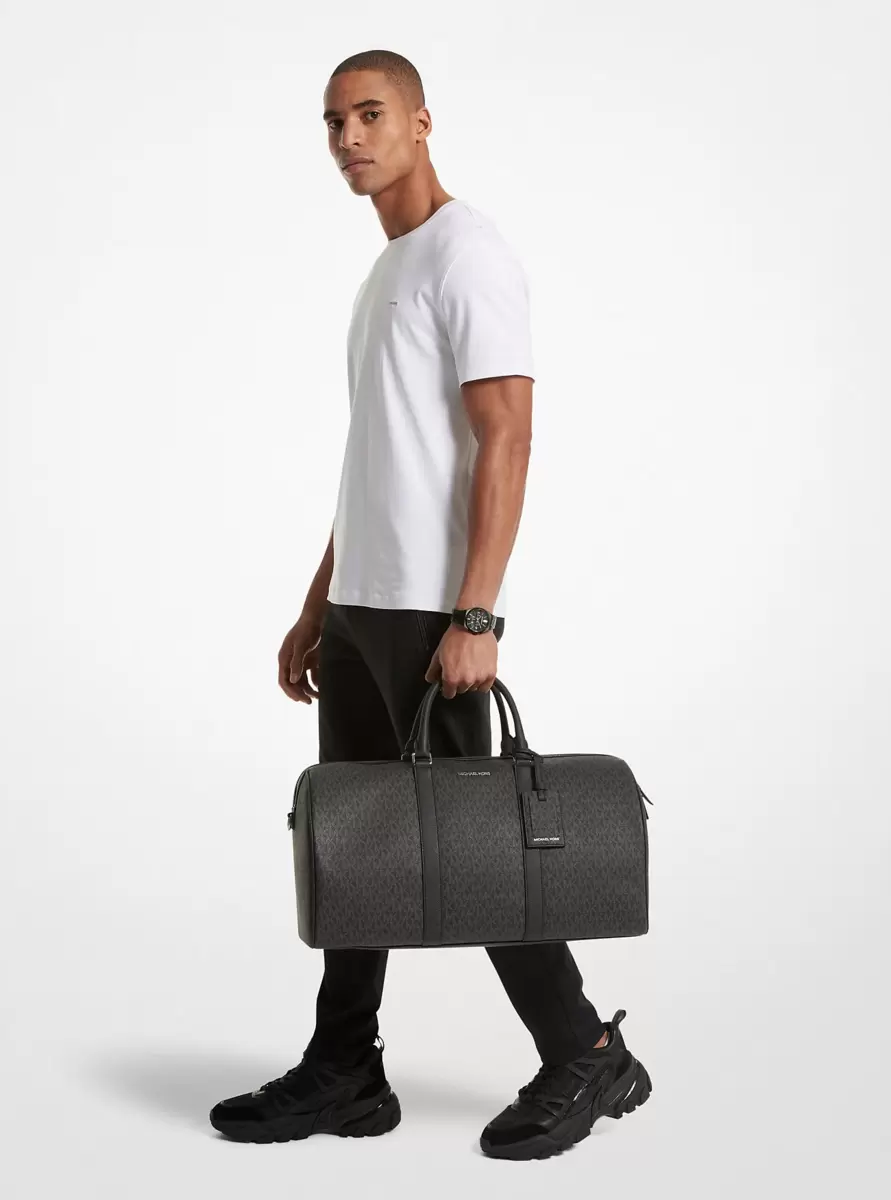 Zaprojektowana z płótna z nadrukiem Signature i gładkimi akcentami, nasza torba weekendowa Harrison to idealny bagaż podręczny. Posiada przestronne wnętrze, które bezpiecznie pomieści wszystkie Twoje rzeczy, a usztywnione uchwyty u góry i polerowane okucia w kolorze grafitowym dodają jej subtelnego charakteru. Noś ją na ukos lub odepnij odpinany pasek podczas porannych dojazdów do biura.