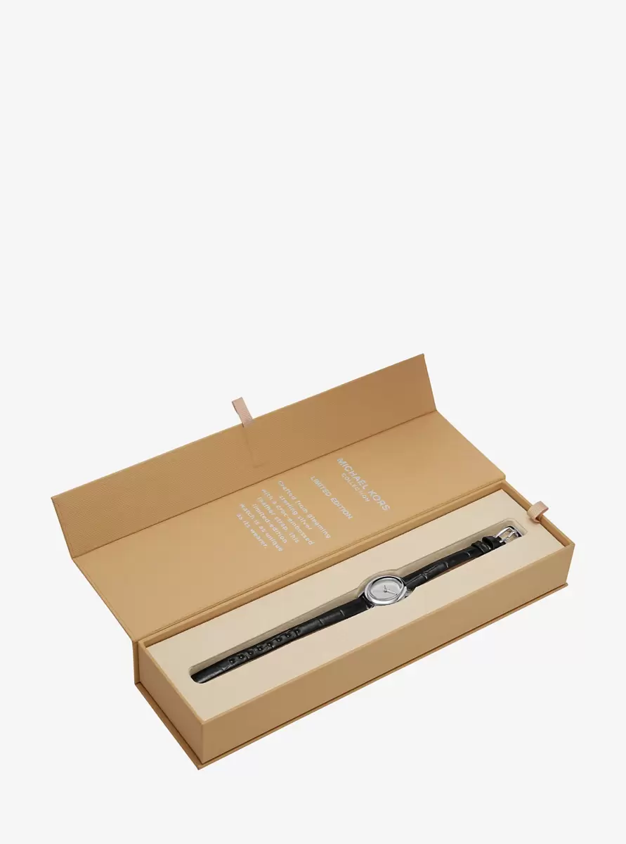 Zegarek Petite Maude w limitowanej edycji w kolorze srebrnym z tłoczoną skórą krokodyla